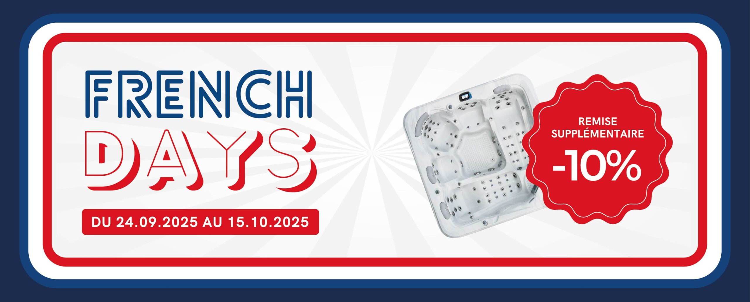 Profitez vite d’une remise de -10% supplémentaire sur nos spas fabriqués en France, du 24 septembre au 15 octobre 2025 !